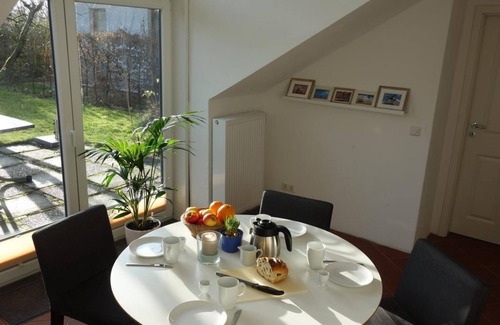 ¡Vacaciones en un pequeño e idílico Warfendorf, rodeado de antiguas canchas del Golfo, el canal Ems-Jade y los pastizales para vacas, pero a solo 15 minutos a pie por el canal hasta el centro de la ciudad de Emden!Los senderos y las rutas de bicicleta señalizadas comienzan justo afuera de la puerta principal, el Borkumkai está a cinco kilómetros de distancia, en el Emsdeich usted conduce 20 minutos. Dunas en el continente? Esto es de 35 minutos en Norddeich. posible. Y después de los viajes, cocine o relájese en casa, tal vez incluso sea agradable en el jardín o sentado en el muelle con vistas a la isla del amor. Y disfrutar de la puesta de sol. En 2017, la cocina comedor en el antiguo establo tiene una gran buhardilla, por lo que puede sentarse en la cocina del jardín, incluso cuando llueve. Además, el salón tiene una estufa nueva para las acogedoras noches de invierno. Si quieres vivir en una casa con mucha luz, una mezcla de elementos modernos e históricos, entonces te sentirás cómodo aquí. Las mascotas son bienvenidas, el paseo para perros comienza justo afuera de la puerta. Por nuestra cuenta: no siempre estamos en casa. Por favor, asegúrese de contactarnos con anticipación, ¡si ha reservado para el mismo día!
