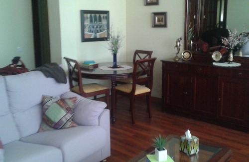 Esplendido piso muy luminoso y acogedor, en urbanizacion privada con parking privado, de dos dormitorios, uno con dos camas de 90 cm. juntas, ofrezco sabanas grandes, y otro individual con cama de 110 cm. y cama supletoria plegable, ambos con grandes armarios, despacho completo con biblioteca, cuarto de baño con bañera, cuarto de baño con ducha, gran salon con muebles clasico-modernos, con TV con sistema Movistar fusion, WIFI, todo el piso con suelos de madera, cocina totalmente equipada con electrodomesticos y ajuar completo, balcon-terraza con vistas a la Giralda y zona de la Buhaira, calefaccion central, aire acondicionado, proximo a colegios, zonas comerciales, gimnasio, parques y jardines, centros medicos. bares y restaurantes, Centro Comercial Nervion Plaza, a diez minutos de la Estacion de Santa Justa y muy bien comunicado con autobuses y taxis hacia el centro historico. Ideal para parejas y clientes de larga estancia. En alquiler desde hace mas de diez años siempre a plena satisfaccion de los clientes. Precios especiales para largas estancias con detalles de bienvenida.