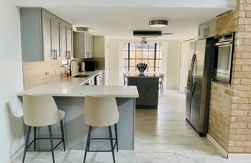 Este alojamiento de 3 dormitorios y 2 baños cuenta con una sala de estar, chimenea, aire acondicionado y escritorio. También puedes utilizar la bañera de hidromasaje, además de otras comodidades como toallas, champú y jabón. La cocina está equipada con horno, placa de cocina y frigorífico, además de cafetera y tetera, hervidor eléctrico y microondas. Y como podrás aprovechar la lavadora y la secadora, no te hará falta llevar mucho equipaje.