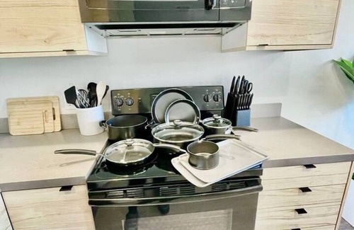 Al instalarte en este alojamiento de 2 dormitorios y 1 baño, encontrarás aire acondicionado y escritorio. La cocina está equipada con horno, placa de cocina y frigorífico, además de cafetera y tetera, microondas y utensilios de cocina. Y no tendrás que llevarte ropa de más, porque podrás aprovechar la lavadora y la secadora.