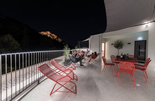 This groovy penthouse studio apartment is located in a beautiful neighborhood of Athens city center, at the top of Lycabettus Hill. It has a fabulous large balcony overlooking a forest quality furnishings and brand new, modern facilities. It is a stone's throw from Kolonaki and the central business district, and a short cab ride to the Acropolis and historical centre. Enjoy the privacy of a luxury apartment with hotel-grade benefits, including housekeeping, gym and a roof terrace with BBQ.