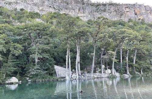 En esta cabaña que acepta mascotas podrás disfrutar del kayak, de la observación de aves y de mucho más a muy poca distancia. Al disponer de un aparcamiento en las instalaciones, podrás olvidarte de tu vehículo e ir a pasear. Estarás a 3min a pie de Parque estatal Garner y a 6min a pie de Frio River.